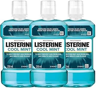 Listerine Cool Mint Mouthwash Liquid, Removes 99.9% Germs, 250ml Combo Pack of 3 (Buy 2 Get 1 Free)